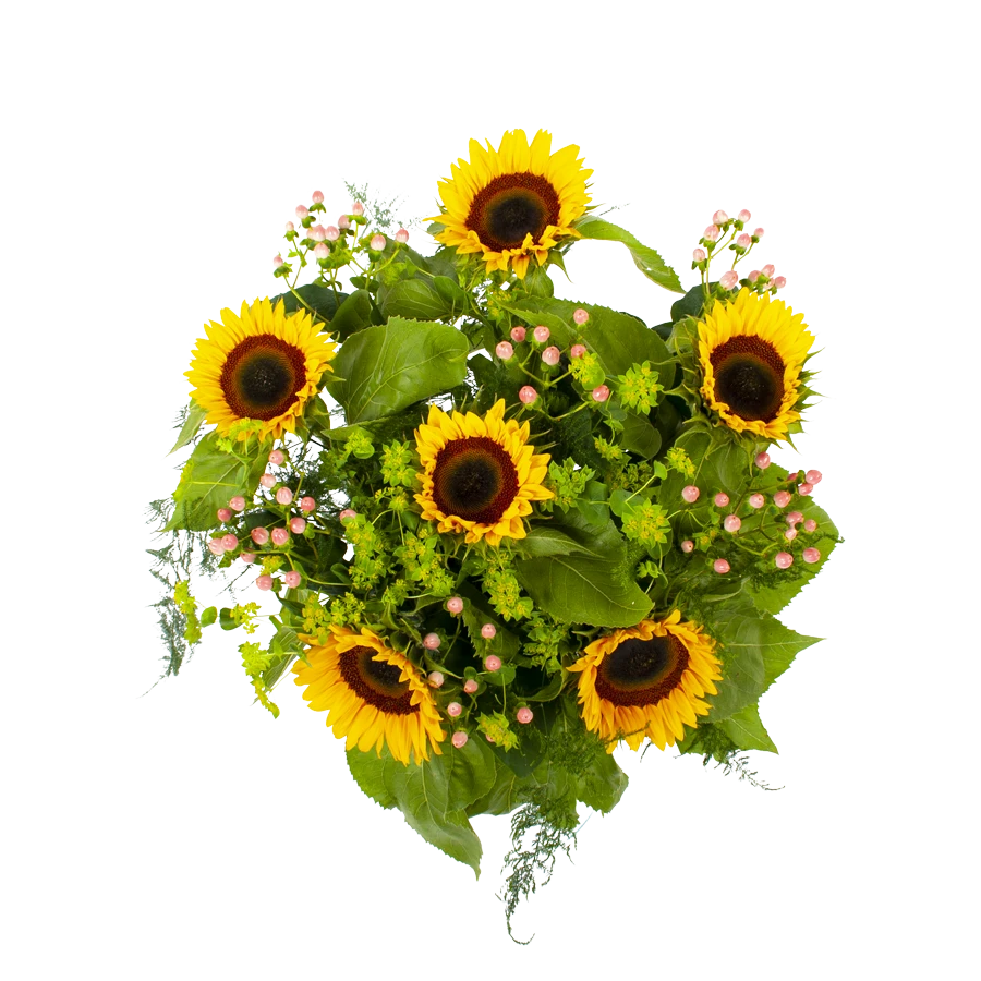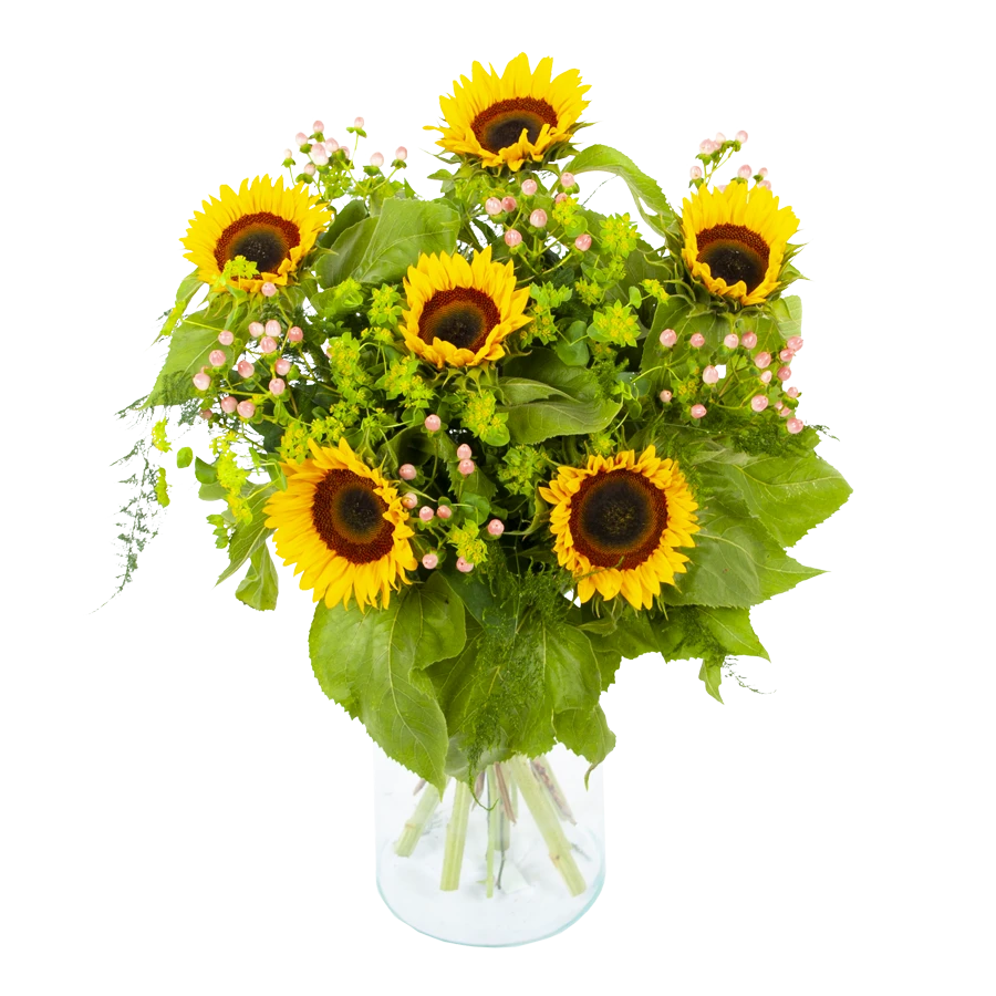 De practhige combinatie tussen zonnebloemen en groen geeft boeket zonnestraal een gezellige en zomerse uitstraling. Dit zonnebloemen boeket creëert meteen een prachtige sfeer in huis. Bovendien geschikt voor verschillende gelegenheden. Feliciteer, bedankt of verstuur zomaar dit prachtige handgebonden boeket en verras de ontvanger! * Exclusief accessoires en vaas